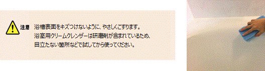 浴室用クリームクレンザーを柔らかいスポンジに付け、浴槽表面をキズ付けないようにこすり落としてください。