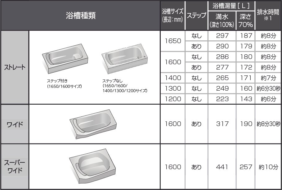 ( 場所により排水経路が異なるため、実使用上の時間は長くなることがあります)