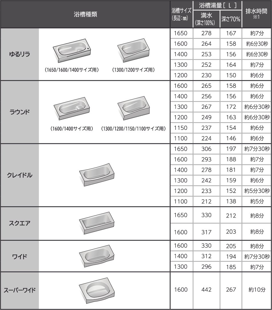 浴槽の排水時間は浴室の設置状況や、浴槽の形状・サイズにより異なります。