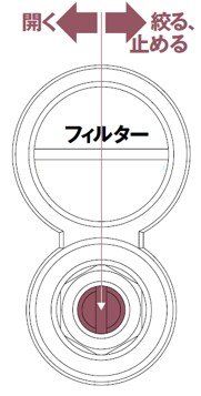 1. 開閉工具で整流キャップを回して外し、網にごみや汚れがついていないか確認してください。