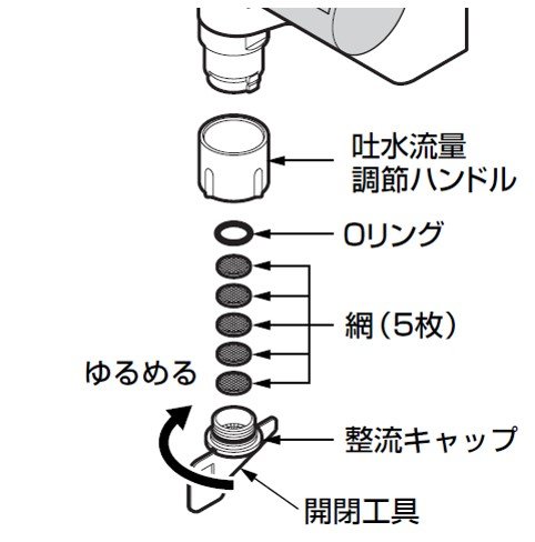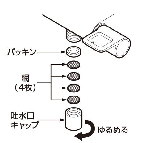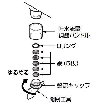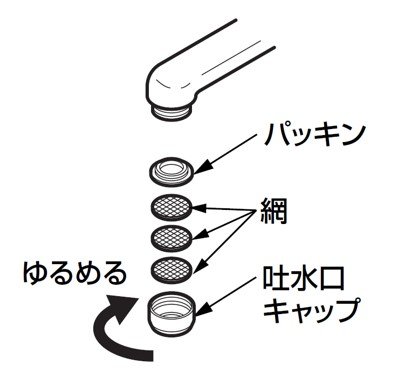 • 網を取り外して使用すると吐水に異物が混じる恐れがありますのでおやめ下さい。