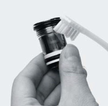 1. 吐水口キャップを回して外し、網にごみや汚れがついていないか確認してください。