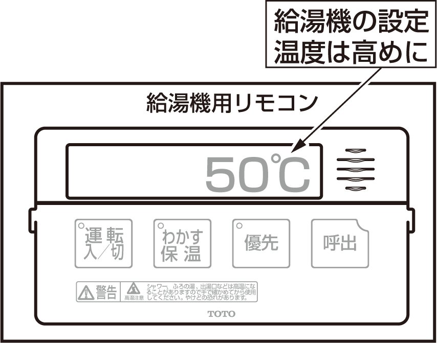 給湯機の設定温度は希望の吐水温度より高めに設定してください。