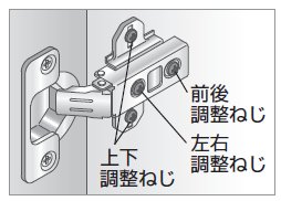 扉のタイプにより調整の仕方が違います。ご確認の上、扉の調整をお願いします。なお、扉の調整後は、ねじをしっかり締めてください。扉にずれはないが、がたつきがある時は、固定ねじがしっかり締まっているか確認ください。