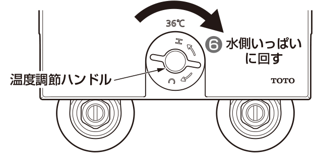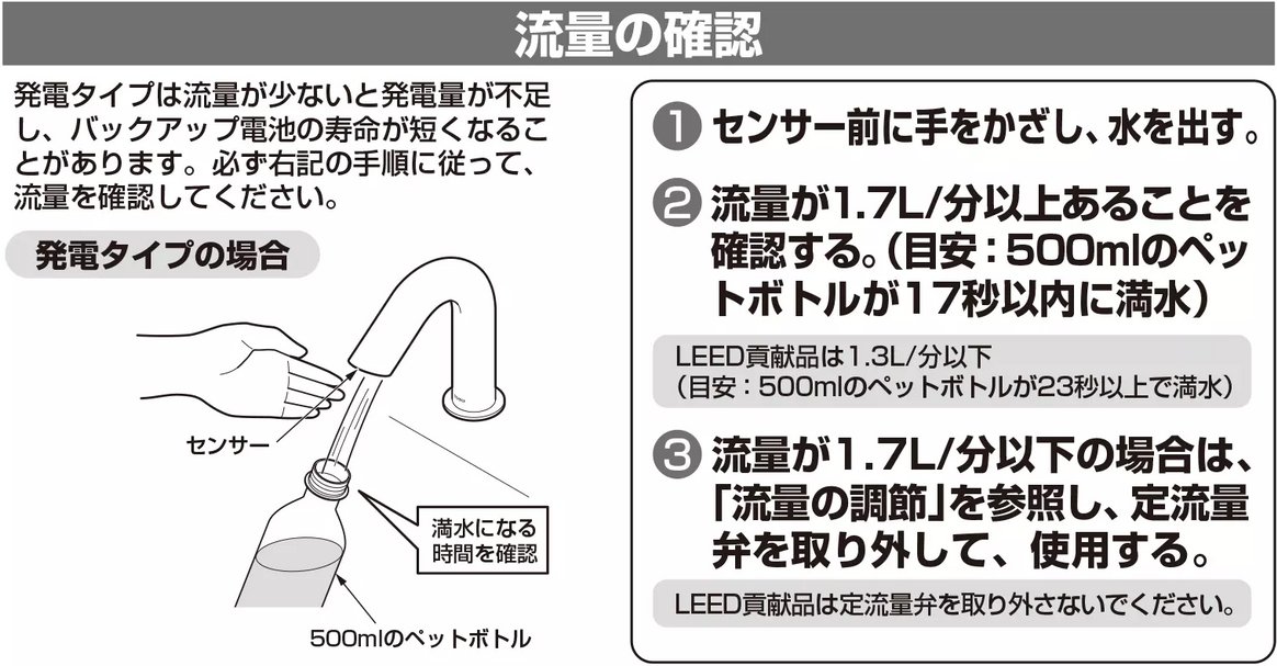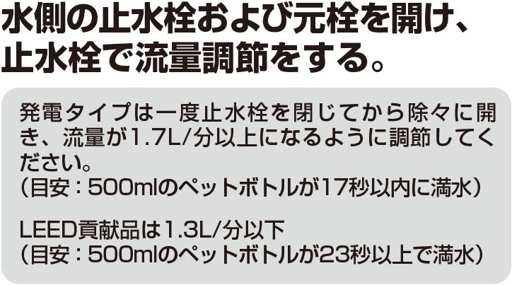 ⑤止水栓および元栓を開け、流量を確認し、適正な流量に調節する。