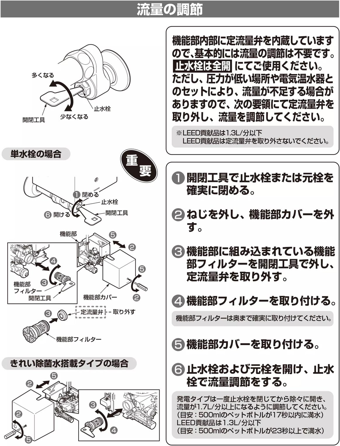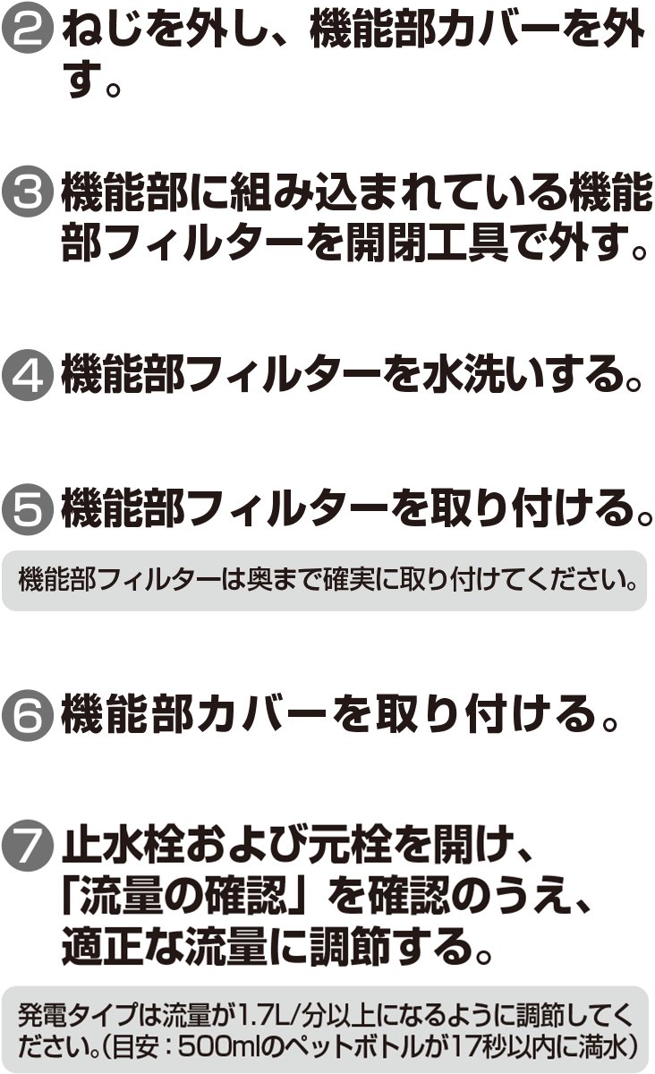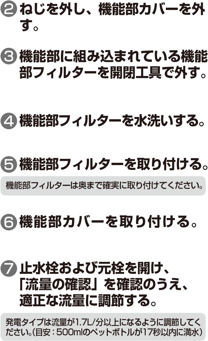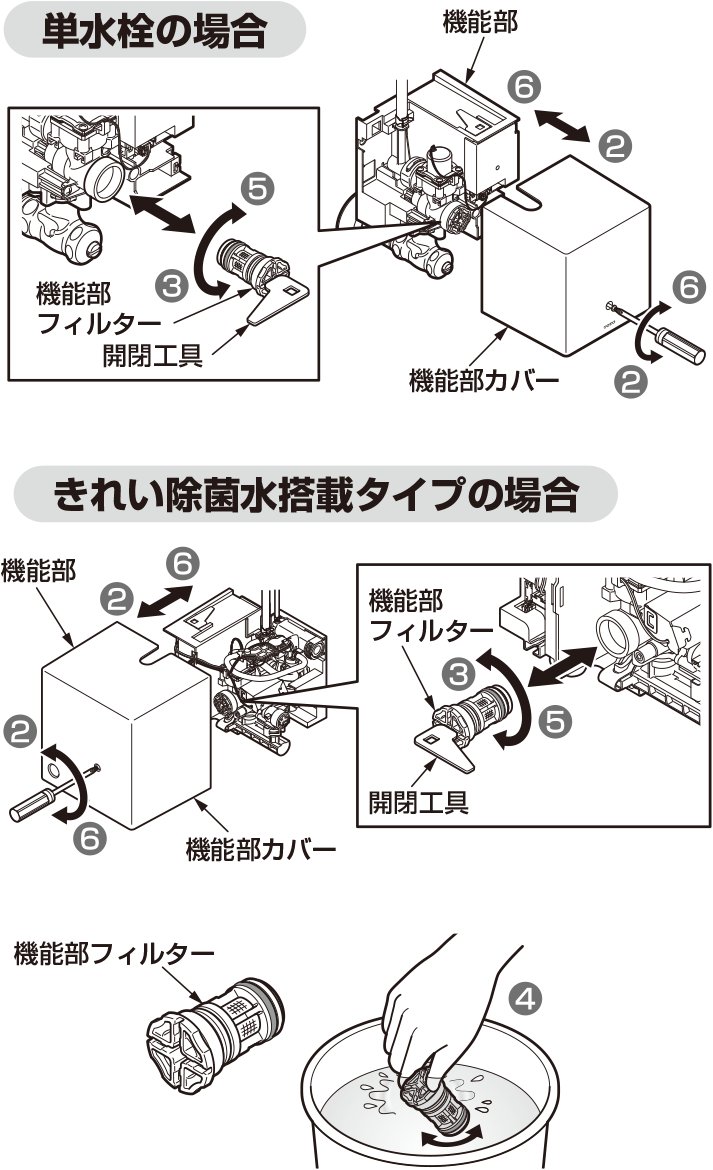 フィルターや吐水口の掃除をしても流量が少ない場合は、機能部フィルターを掃除してください。