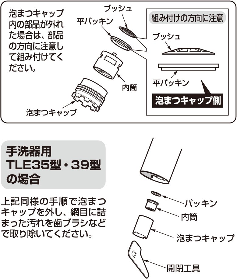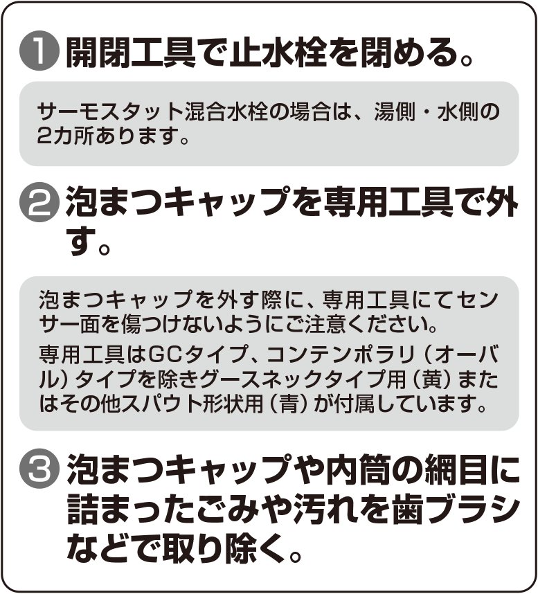 <例:フィルター・吐水口の掃除方法(サーモスタット混合水栓の場合)>