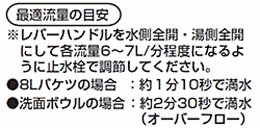 止水栓によって、水と湯の出る量を調節します(最適流量に調節してください)。