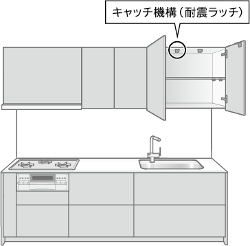 通常状態では、扉は自由に開け閉めできます。地震などの振動を感知して、扉開放と収納物の落下のリスクを軽減します。振動が止まると、自動的に扉を開け閉めできる状態に戻ります。