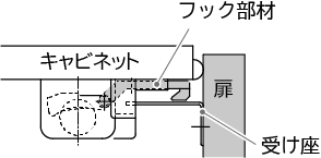 扉が閉まらない場合は、受け座が本体のズレ防止用リブに接触している可能性があります。扉・受け座の位置を調整してください。