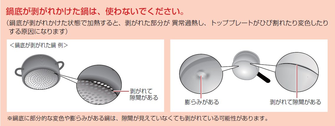 付き、IHで使えると表示しているものでも使わないでください。