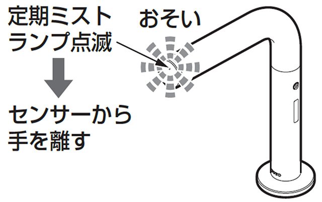※14秒以上センサーに手をかざした場合、定期ミストモードの設定となります。