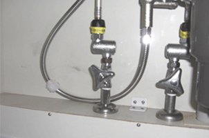 キャビネット内に取り付けている止水栓や配管などに、シャワーホースが干渉している。