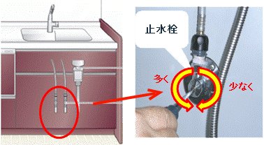※製品により止水栓などの形状が異なる場合がります。詳しい作業方法は、お使いの製品の取扱説明書よりご確認ください。