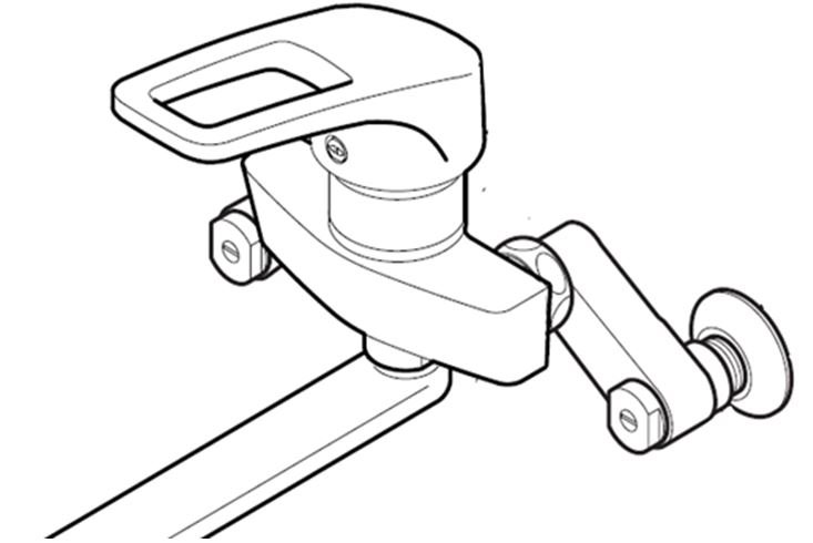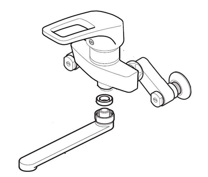 3. 本体に差し込んでから、スパウトを水平に保ち、袋ナットを右(反時計回り)に 締めていきます。