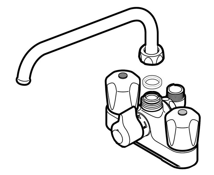 水を出した状態と止めた状態それぞれにおいて、スパウトを左右に振って下さい。 その状態で、袋ナット部分から水が漏れていないかを確認し、水が漏れてきた場合には、もう一度Step2の作業を行ってください。