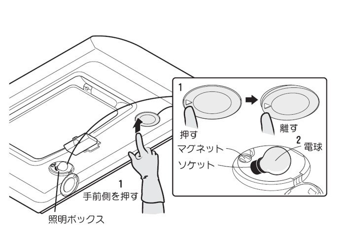 • ランプの交換はスイッチの照明ボタンを「切」の状態にしてから行ってください。