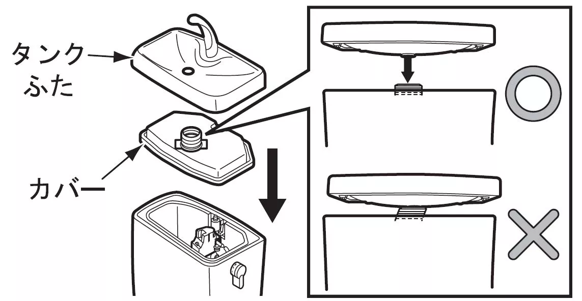 1. タンクふたについている整流スポンジをはがし残しがないように、きれいに取り除いてください。