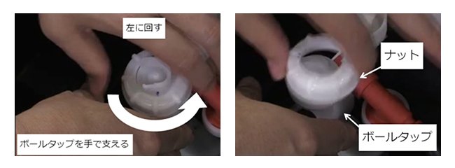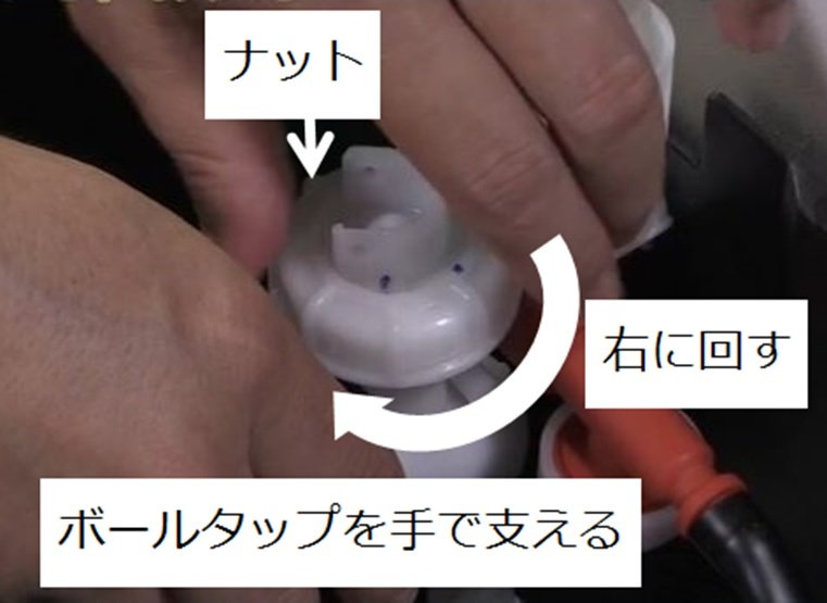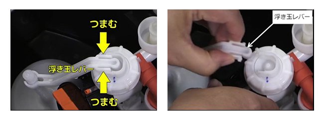 1. 浮き玉レバーの根元をつまんで浮き玉レバーを外す。