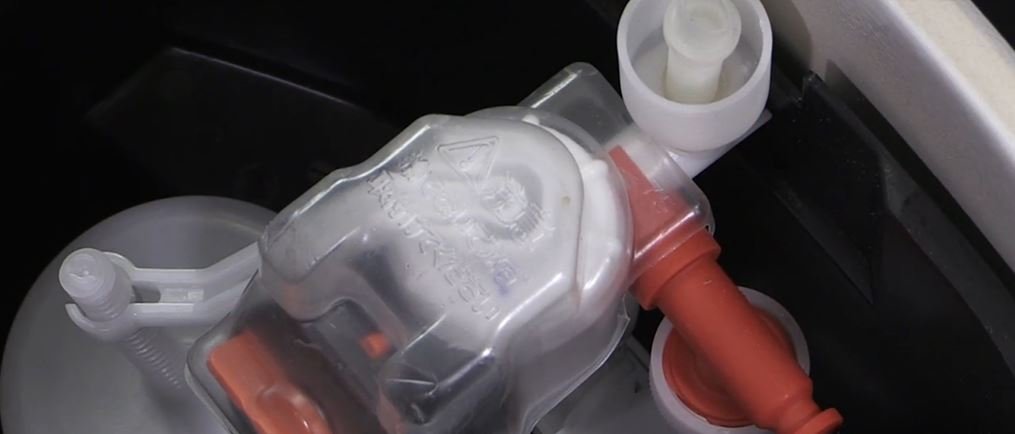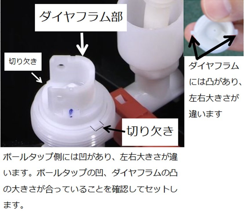 2. 新しいダイヤフラム部をボールタップの切り欠きに合せて差し込む。