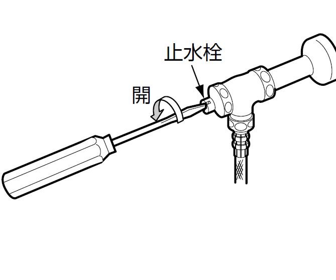 1. 止水栓を開き(マイナスドライバーで左に回す)