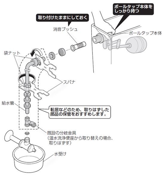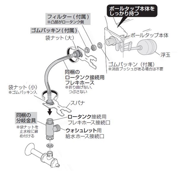 ロータンク接続用フレキホースからのはずし方