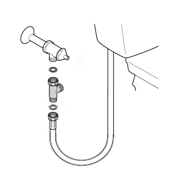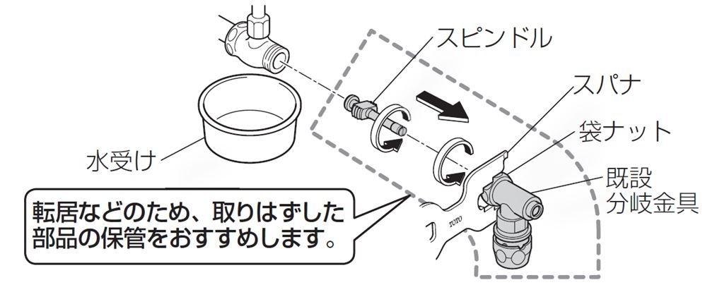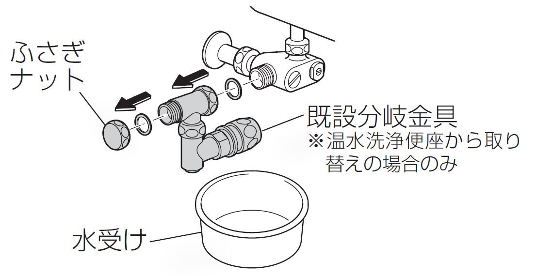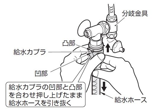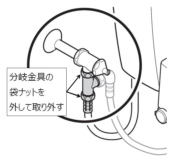 2. ウォシュレットの給水ホースを分岐金具から取りはずしてください