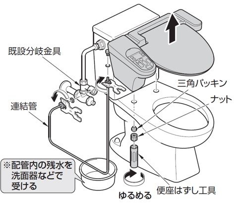 取り付け方法は設置する便座の施工説明書を参照ください。