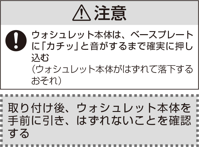 • ウォシュレット本体とベースプレートの間に、コード類を挟み込まないようにしてください。