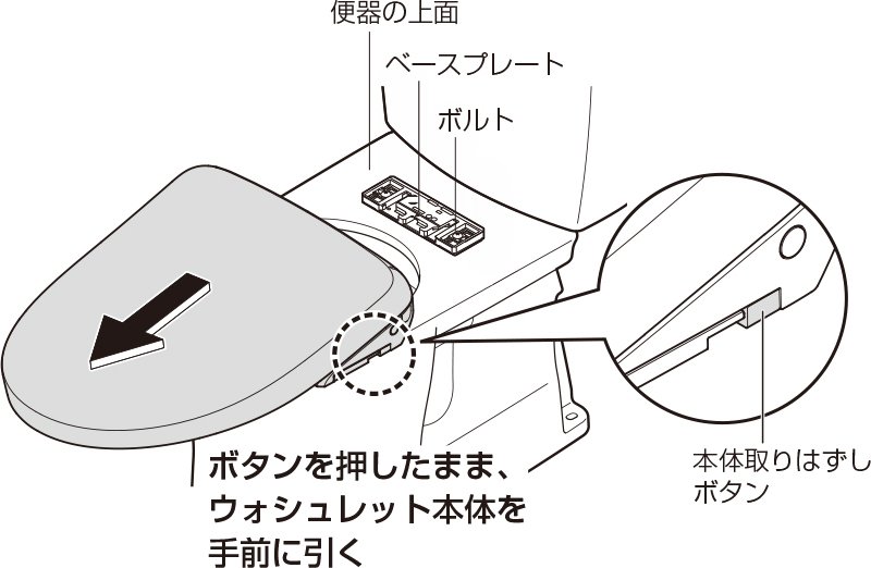 ① 電源プラグを抜き、ウォシュレット本体を取りはずす