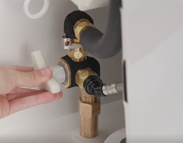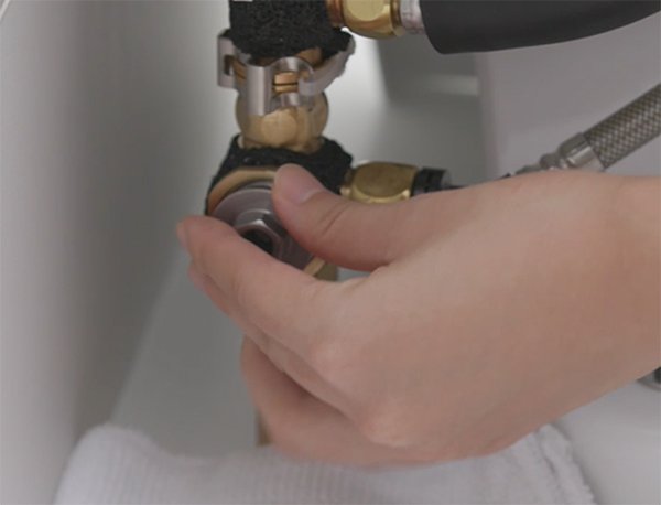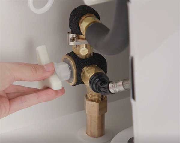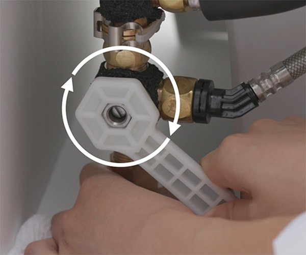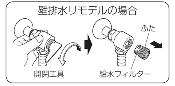 開閉工具を使い、反時計まわりに回し、給水フィルターのふたを開けてください。