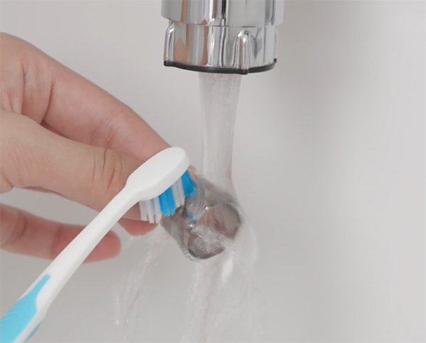 小さなゴミは、歯ブラシなどを使って確実に取り除いてください。