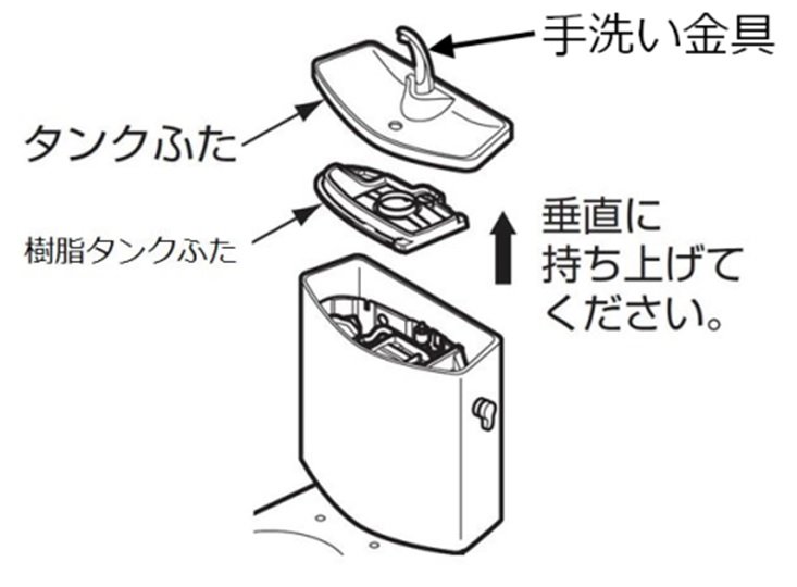 1. 陶器タンクふたを外し、樹脂タンクふたを外してください。