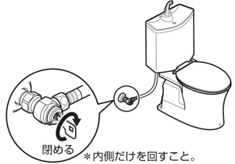 レバーハンドルを回すとタンク内に溜まっていた水が便器内に流れますが、タンク内に新たに給水されないことを確認してください。