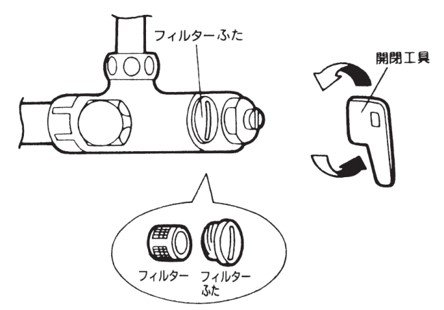 2.開閉工具を使い、フィルターのふたを左(反時計まわり)にまわして取り外します。