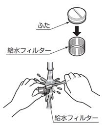 フィルターを取り外す際に若干の水がこぼれます。水の受け皿を用意してください。