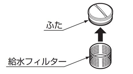 このフィルターがつまると、タンクの水のたまりに時間がかかったりします。その際はフィルターを取り外して掃除してください。