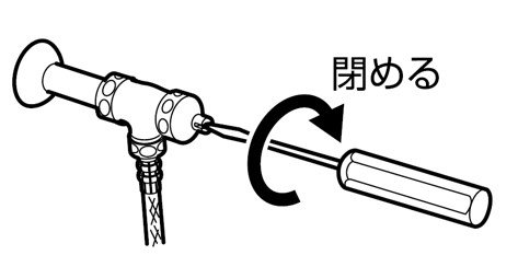 (固い場合は、上部のマイナス形状部分にマイナスドライバーを差し込んで回して下さい。)