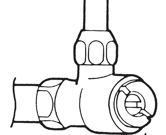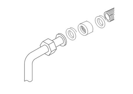 2. フィルターは給水管とタンクの接続部にあります。タンクのふたを開け、ボールタップがタンク内に落ちないよう保持しながら、袋ナットをモンキーレンチで左(反時計まわり)にまわし、取り外します。