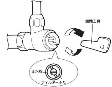 止水栓の形状やタンクの形状によってフィルターの取り外し方が異なります。