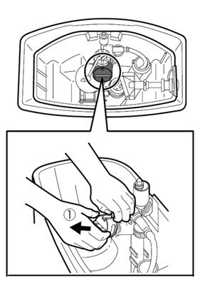 1. フィルターユニットを右(時計まわり)にまわしてタンク内に取り付けます。