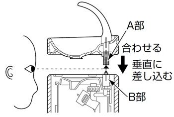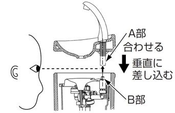 手洗い付きの場合は、A部をB部に差し込んでタンクふたをのせます。