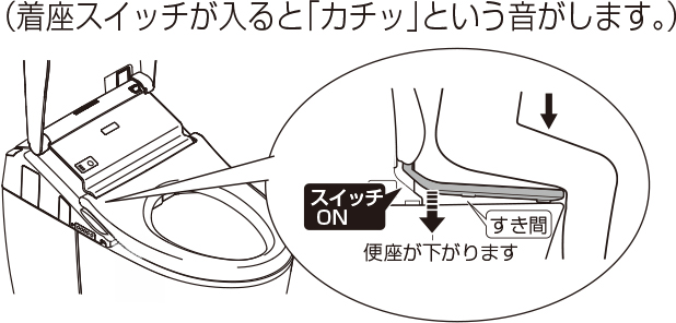 便座に浅く座ると着座スイッチが入らない場合があります。