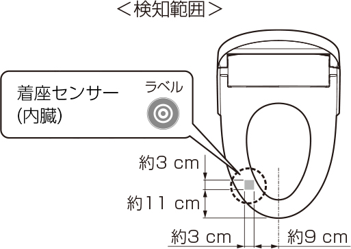 検知範囲やラベルの位置は、製品によって異なりますが、ラベルを目安に便座に座るようにしてください。