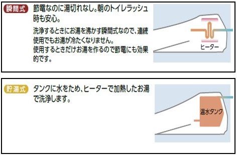 瞬間式と貯湯式の違いは以下にてご確認ください。