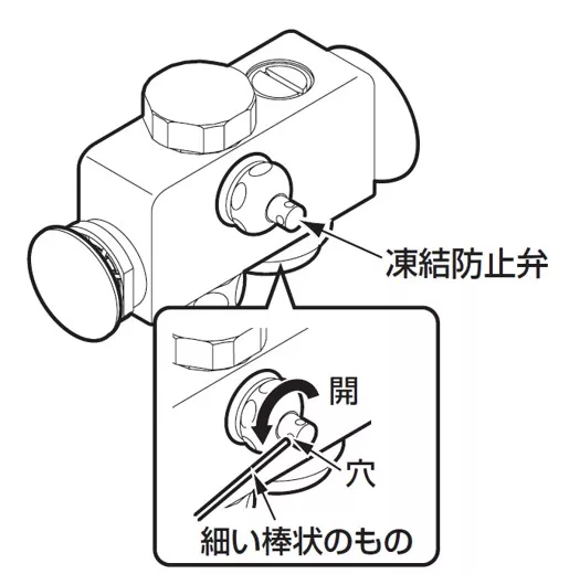 尚、外気温が-15度以下になる恐れがある場合や長期間使用しない場合には取扱説明書に従って水抜きを行ってください。
