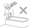 ・ 浴槽に乗って立ち上がると、滑りやすく不安定なため、転倒しけがをするおそれがあります。