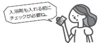 ・身体の不自由な方や幼児は、転倒や溺水のリスクが高いため、必ず介助者が付き添ってください。特に浴室は滑りやすく、温度管理も難しいため、一人での入浴は非常に危険です。介助者がそばにいることで、万が一の事故を防ぎ、迅速に対応することが可能です。