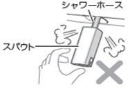 高温の湯を使う時は、シャワーホース及びスパウトに直接触れない