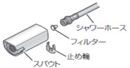オクターブF2の場合スパウト部フィルターの掃除をするときはレバーハンドル閉めてから作業を行う。また、シャワーホース部が熱くないことを確認する。